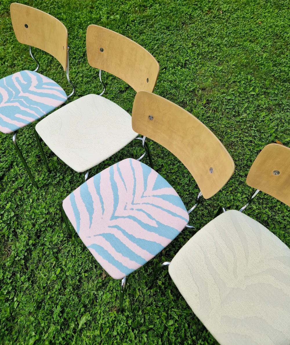 Esimerkiksi pienen keittiön tuolin istuimen verhoilu ja pehmusteiden vaihto maksaa 60€ + kangas.